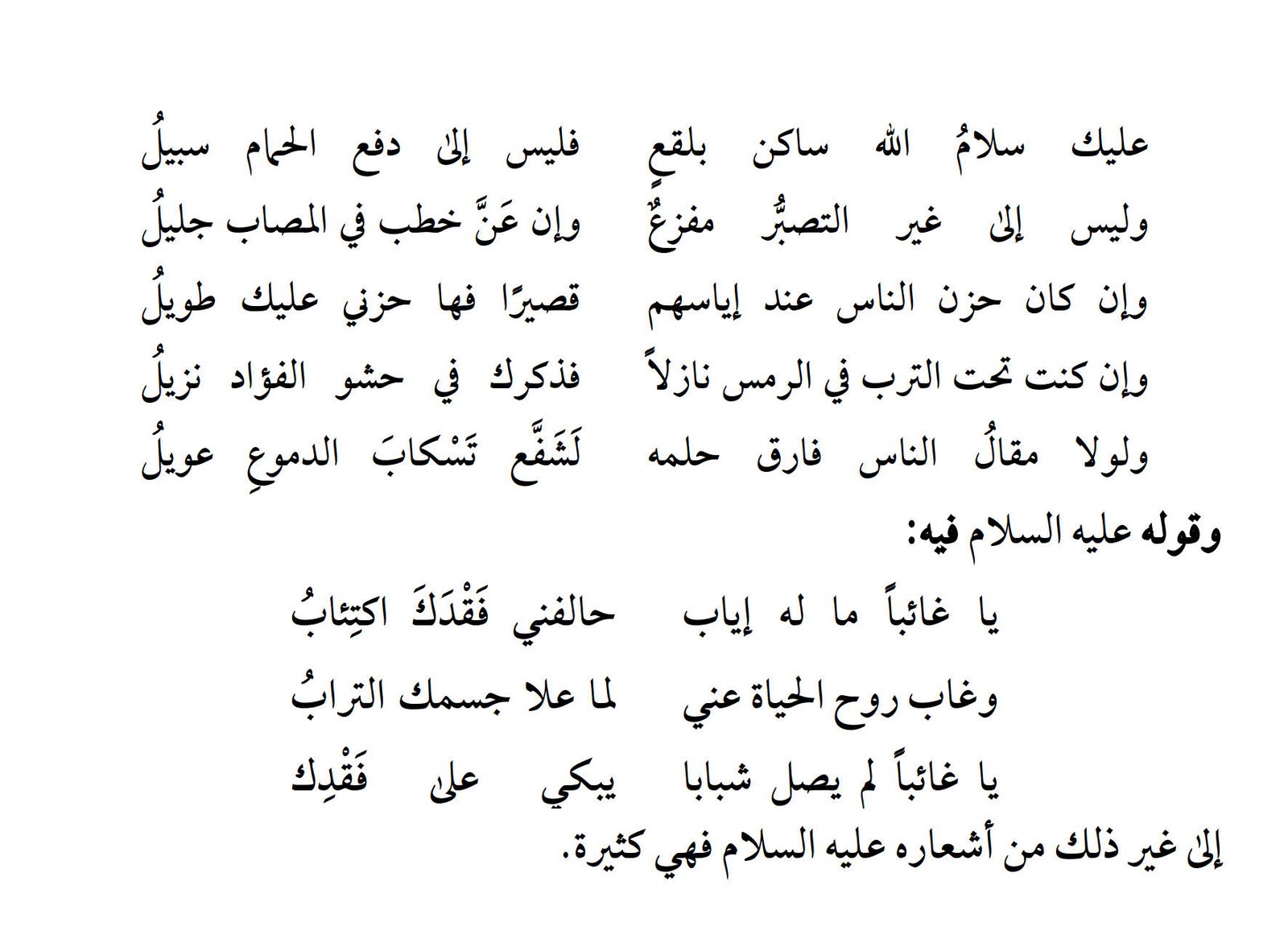 ومن شعره قوله عليه السلام في مرثية في غلام له: